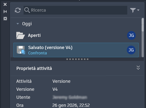 Nota: Attualmente, in AutoCAD LT viene visualizzata solo l'attività Versione nella tavolozza Informazioni approfondite attività.