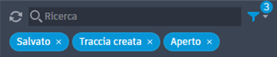 Per eseguire la ricerca, immettere il testo nella barra di ricerca per filtrare l'elenco di attività. Può trattarsi di un numero, un giorno, un mese, un nome di file, un nome di traccia, un nome o un valore di proprietà, un nome utente o un nome di attività che utilizza informazioni complete o parziali.
