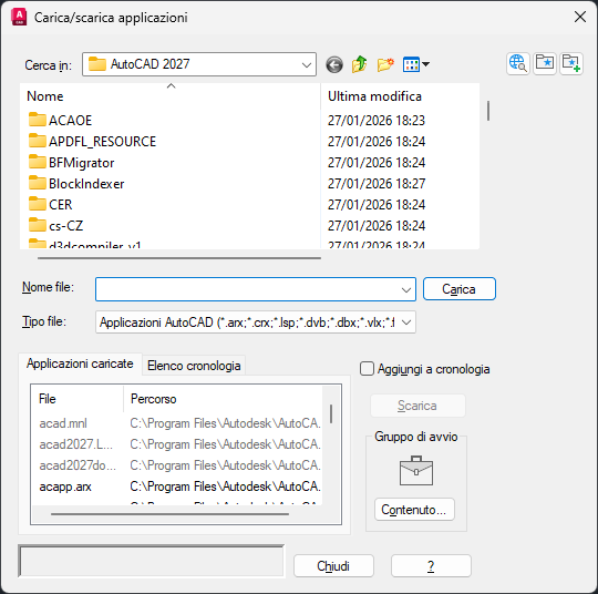 Consente di caricare e scaricare applicazioni e di specificare le applicazioni da caricare all'avvio di AutoCAD.