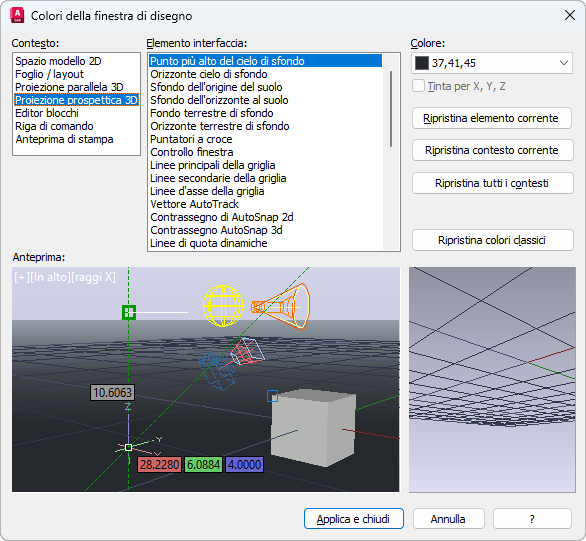 OPZIONI (comando) Trova: scheda Visualizzazione > Colori