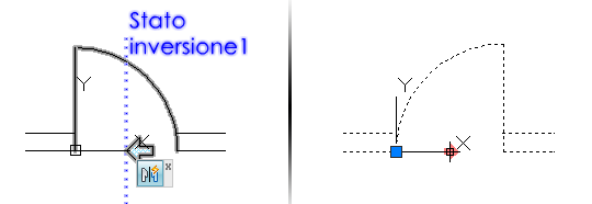 Un'azione di inversione consente di creare copie speculari degli oggetti selezionati in un riferimento di blocco dinamico attorno alla linea di inversione specificata.
