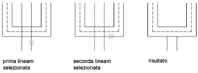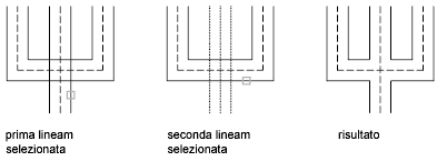 Crea un'intersezione a ti aperta tra due multilinee. La prima multilinea viene tagliata o estesa in corrispondenza dell'intersezione con la seconda multilinea.