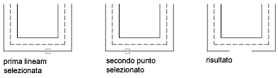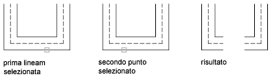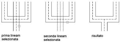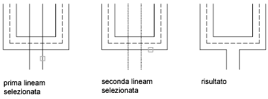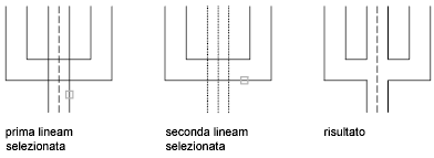 Crea un'intersezione a ti unita tra due multilinee. La prima multilinea viene tagliata o estesa in corrispondenza dell'intersezione con la seconda multilinea.