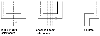Crea un'intersezione a ti chiusa tra due multilinee. La prima multilinea viene tagliata o estesa in corrispondenza dell'intersezione con la seconda multilinea.