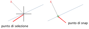 Nota: I risultati possono variare se sono attivati gli snap a oggetto Intersezione e Intersezione apparente.