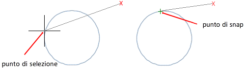 Con le impostazioni di snap ad oggetto in esecuzione, anche dette osnap in esecuzione, è possibile specificare un punto in un punto esatto di un oggetto. Premere TAB per passare da un'opzione all'altra.