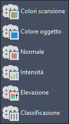 Colori scansione. Questa opzione consente di visualizzare i punti con colori reali, originariamente acquisiti da un apparecchio fotografico incorporato nello scanner durante il processo di scansione.
