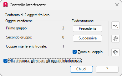 Visualizza il numero di interferenze trovate tra gli oggetti selezionati.