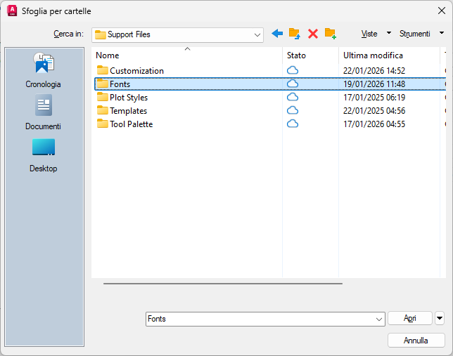 - Individuare la posizione di una cartella o di un file all'interno del progetto di Autodesk e fare clic su Apri.