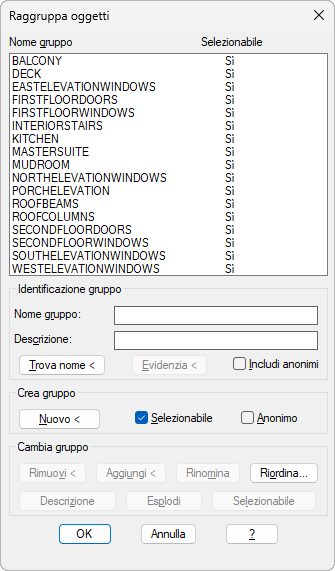 Consente di visualizzare, identificare, assegnare un nome e modificare gruppi di oggetti.