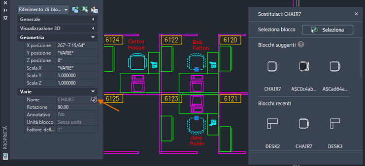 Questa funzionalità di blocco intelligente sostituisce i riferimenti di blocco specificati effettuando la selezione da una tavolozza di blocchi simili suggeriti.