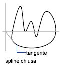 Chiude la spline facendo coincidere l'ultimo punto con il primo. Per default, le spline chiuse sono periodiche, in quanto mantengono la continuità della curvatura (C2) lungo l'intera sequenza chiusa.
