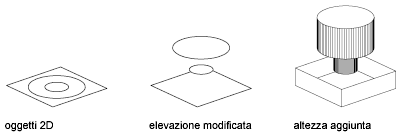 Si definisce spessore 3D di un oggetto la distanza di estensione dell'oggetto al di sopra o al di sotto della sua posizione in 3D. Per spessore positivo si intende l'estensione verso l'alto nella direzione dei valori positivi di Z; per spessore negativo si intende l'estensione verso il basso (valori di Z negativi).