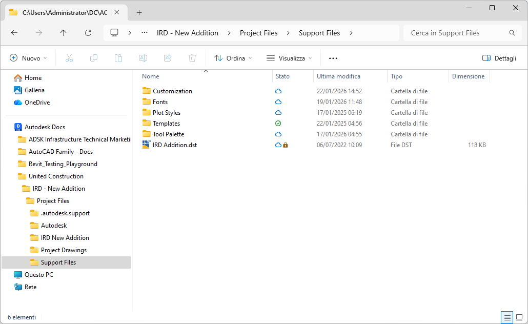 I file di supporto aggiunti alle cartelle locali verranno sincronizzati nel progetto di Autodesk con Desktop Connector.