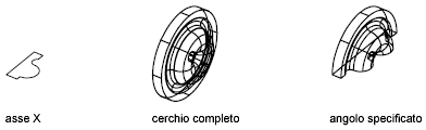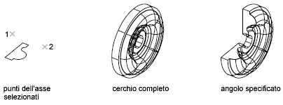 Non è possibile eseguire la rivoluzione degli oggetti contenuti in un blocco o autointersecanti. Il comando RIVOLUZIONE ignora la larghezza della polilinea ed esegue la rivoluzione dal centro della traiettoria della polilinea stessa.