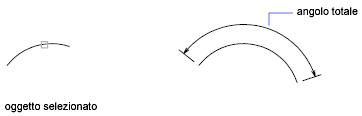 Imposta la lunghezza di un oggetto selezionato specificando la lunghezza assoluta totale rispetto ad un punto finale fisso. Totale imposta l'angolo incluso di un arco selezionato attraverso un angolo totale specificato.
