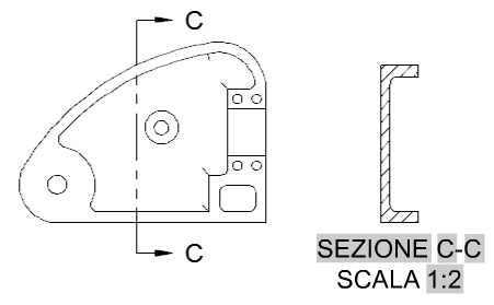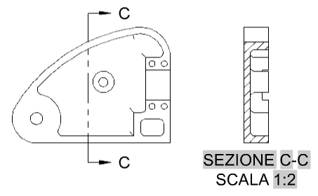 • Trancia Tutta la geometria che si trova oltre il piano di taglio della linea di sezione viene rimossa dalla vista in sezione e in quest'ultima viene rappresentata una sottile trancia.