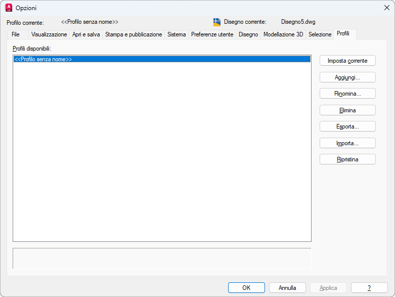 Importa un profilo, ovvero un file con estensione .arg, creato utilizzando l'opzione Esporta.