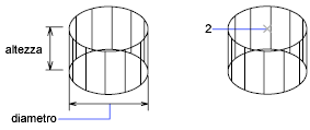 Definisce il diametro della base del cilindro mediante la specifica di due punti.