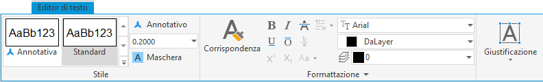 Nota: La variabile di sistema MTEXTTOOLBAR controlla la visualizzazione della barra degli strumenti di formattazione del testo.