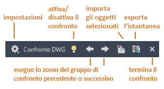Quando viene avviata un'operazione di confronto, viene visualizzata la barra degli strumenti Confronto DWG.