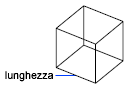 Crea un parallelepipedo con la lunghezza, la larghezza e l'altezza specificate. Se si digitano dei valori, la lunghezza corrisponde all'asse X, la larghezza all'asse Y e l'altezza all'asse Z. Se si seleziona un punto per specificare la lunghezza, si specifica anche la rotazione nel piano XY.