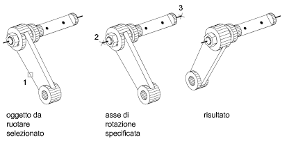 La direzione positiva dell'asse è compresa tra il punto iniziale e il punto finale, e la rotazione segue la convenzione della mano destra.