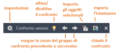 La barra degli strumenti Confronto versioni consente di eseguire una serie di funzioni: