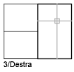 Le opzioni Orizzontale e Verticale dividono l'area in tre parti uguali. Con le altre opzioni viene creata una finestra che occupa metà dell'area disponibile e due finestre più piccole che occupano l'altra metà. Le opzioni Sopra, Sotto, Sinistra e Destra specificano il posizionamento della finestra di dimensioni più grandi.