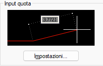 Quando l'input quota è attivato per le descrizioni comandi dinamiche e un comando richiede di specificare un secondo punto, nella descrizione comando vengono visualizzati i valori della distanza e dell'angolo. I valori nelle descrizioni quota cambiano allo spostamento del cursore. Premere TAB per passare al valore da modificare. L'input quota è disponibile per i comandi ARCO, CERCHIO, ELLISSE, LINEA e PLINEA.