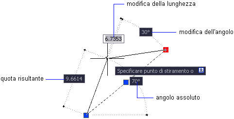 Quando si utilizzano i grip per modificare un oggetto, nelle descrizioni dell'input quota possono essere visualizzate le seguenti informazioni: