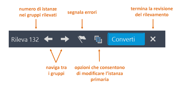 Evidenzia il gruppo precedente o successivo, consentendo una revisione efficiente degli oggetti rilevati.