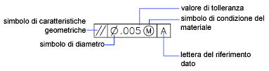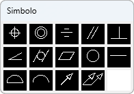 Il simbolo viene inserito nella casella di testo Sim nella finestra di dialogo Tolleranza geometrica. Nella tabella riportata di seguito vengono mostrati i simboli disponibili.