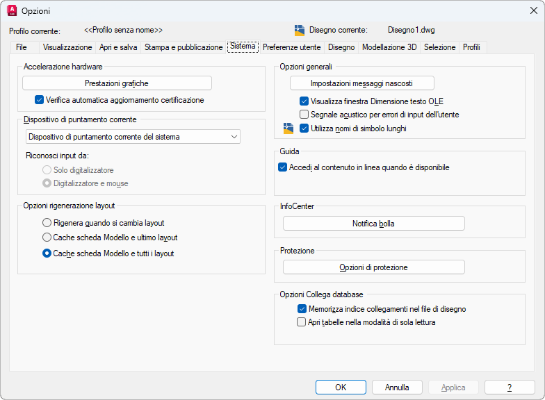 Controlla le opzioni relative alla connessione ai database. (Non disponibile in AutoCAD LT)