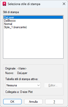 Consente di specificare lo stile di stampa da assegnare.