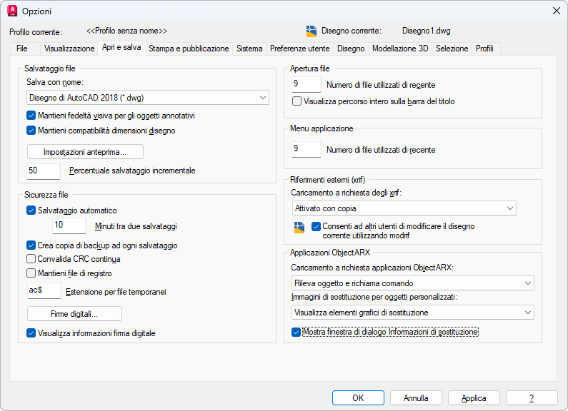 Controlla le impostazioni relative alle librerie di runtime di AutoCAD e agli elementi grafici di sostituzione.