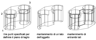 Utilizzare il comando TRANCIA per tranciare un solido o una superficie 3D. È necessario specificare un piano di taglio o selezionare una superficie.