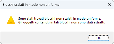 Durante l'estrazione verrà visualizzata una finestra di dialogo che indica che sono stati trovati blocchi scalati in modo non uniforme e che gli oggetti all'interno di tali blocchi non sono inclusi nell'estrazione.