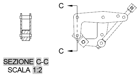I componenti tagliati dalla linea di sezione vengono visualizzati con un tratteggio nella vista in sezione. Secondo le procedure di disegno per l'ingegneria meccanica, i componenti quali elementi di fissaggio e alberi non devono essere tratteggiati (sezionati).