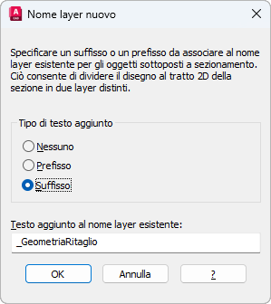 Aggiunge un prefisso o un suffisso personalizzato ai nomi dei layer per semplificare la classificazione dei componenti di un blocco sezione.