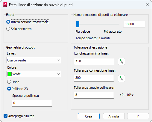 Finestra di dialogo Estrai linee di sezione da nuvola di punti