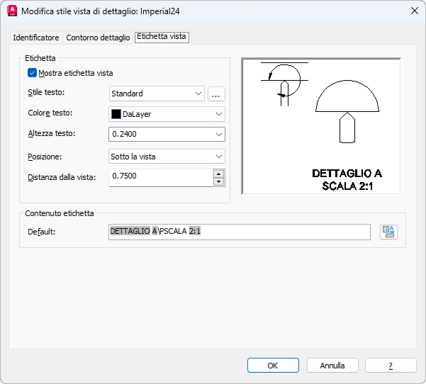 Specifica lo stile del testo da utilizzare per l'etichetta della vista di dettaglio.