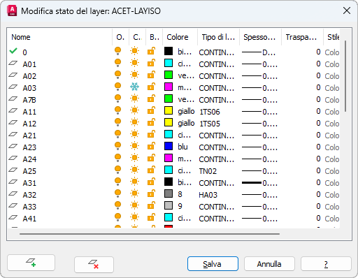 Visualizza la finestra di dialogo Seleziona layer da aggiungere allo stato layer, nella quale è possibile aggiungere layer del disegno corrente che non sono definiti nello stato del layer.