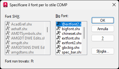 Quando si apre un disegno con un file di font mancanti, viene visualizzata questa finestra di dialogo che consente di scegliere un file di font sostitutivi per lo stile.