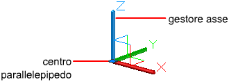 Per spostare oggetti e suboggetti 3D, fare clic e trascinare il gizmo 3D in un punto qualsiasi dello spazio 3D. Questa posizione, indicata dal quadratino centrale (grip base) del gizmo, definisce il punto base per lo spostamento e modifica temporaneamente la posizione del sistema UCS durante lo spostamento degli oggetti selezionati.