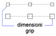 Controlla la visualizzazione dei grip sugli oggetti selezionati. La visualizzazione dei grip in un disegno influisce sulle prestazioni in modo significativo. Per ottimizzare le prestazioni, si consiglia di deselezionare questa opzione. (Variabile di sistema GRIPS)