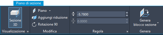 Quando si seleziona una linea di sezione, nella barra multifunzione viene visualizzata la scheda contestuale Piano di sezione.
