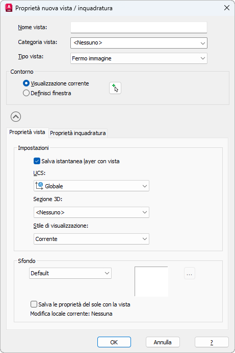 Consente di salvare una nuova vista e gestirne le proprietà.