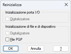 Consente di definire la porta I/O e il file di periferica per la reinizializzazione.