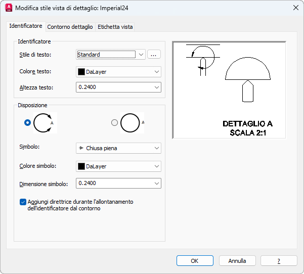 Specifica lo stile del testo da utilizzare per l'identificatore del contorno di dettaglio.